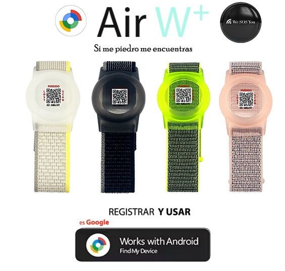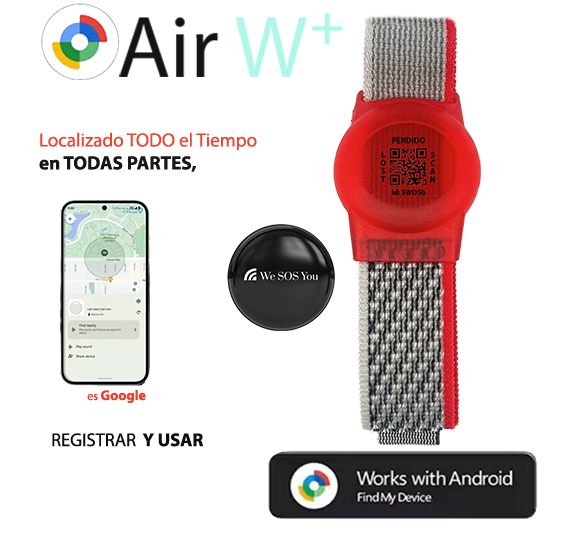 • LOCALIZACIÓN INMEDIATA: con el dispositivo Air W,  SIN APPS y en tu Universo Apple, SOLO pulsando UN BOTON. Android descargar Find My Device de registrar con tu mail de Google y listo.