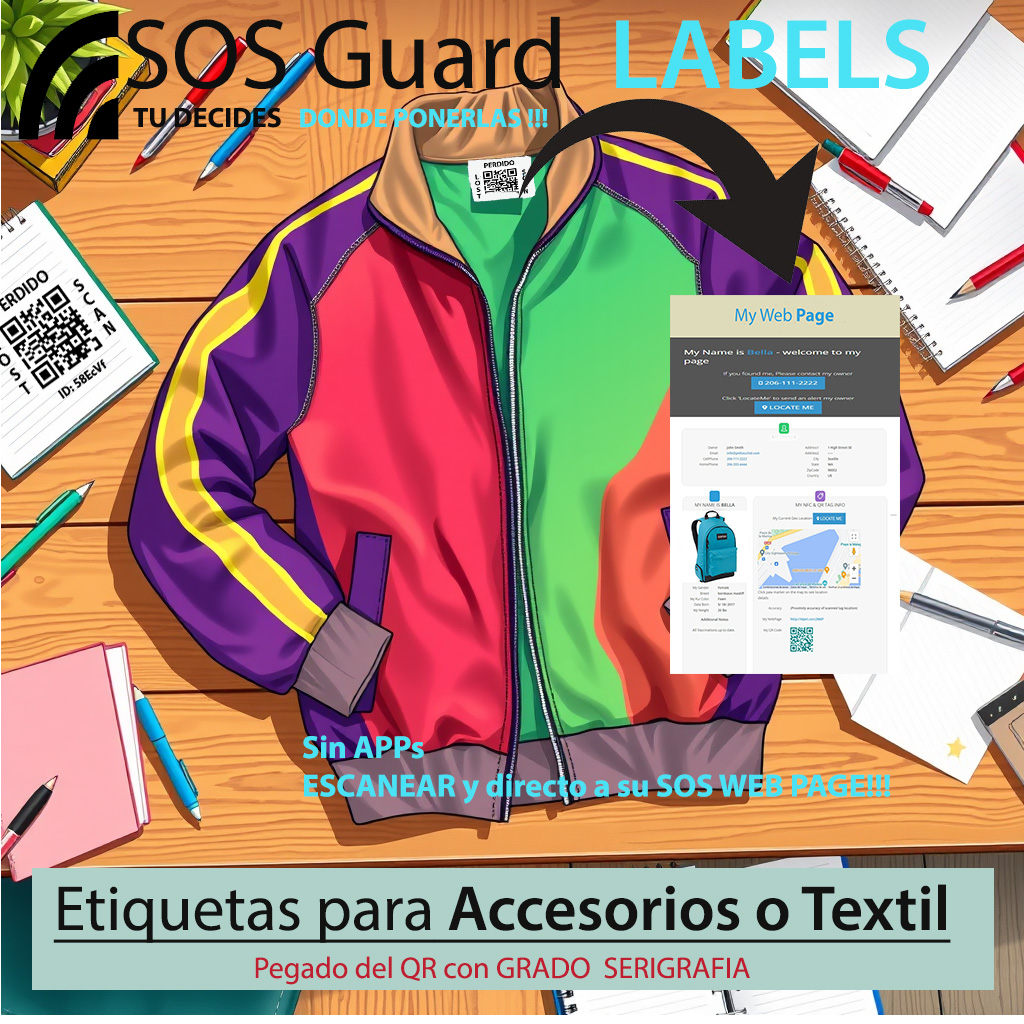 – Etiquetas para emergencias: Datos de contacto o tu teléfono “ocultos” tras el QR (solo visibles al escanear).