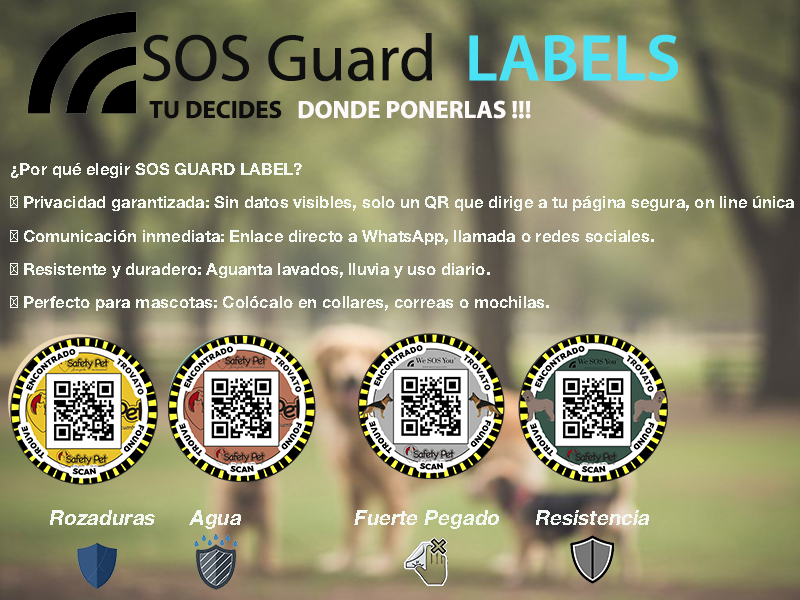 Adicionalmente y sin coste 14 unds. para objetos y prendas SOS QR Secure Unique etiquetas de localización, ultra finas, por escaneo, sin Apps. que nos dirige a su página personal, donde podrá incluir los datos que desee para su localización. Se puede ENCENDER/APAGAR el QR a voluntad. Calidad y resistencia para objetos de valor y prendas de todo tipo.